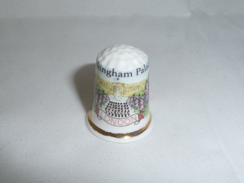 A bone china thimble showing Buckingham Palace, London, 3 cms