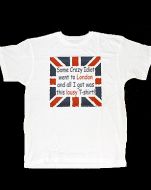 A 100% cotton white t-shirt "SOME CRAZY IDIOT WENT TO LONDON AND ALL I GOT WAS THIS LOUSY T-SHIRT" in a uni…